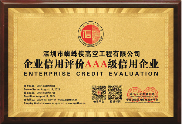 深圳市蜘蛛侠高空工程有限公司AAA信用评价
