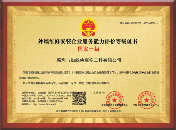 外墙维修安装企业服务能力评价等级证书-铜牌